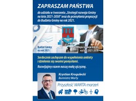 Burmistrz Warty Krystian Krogulecki zachęca mieszkańców gminy Warta do udziału w konsultacjach dotyczących opracowania Strategii Rozwoju Gminy Warta w latach 2021-2030.