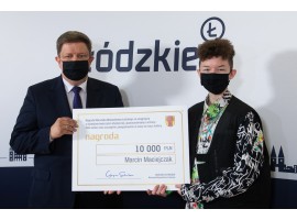 Zwycięzca III Edycji The Voice Kids otrzymał otrzymał nagrodę od Grzegorza Schreibera, marszałka województwa łódzkiego. To czek na 10 tysięcy złotych. - To pieniądze na rozwój, jestem spokojny o to, że Marcin właściwie je spożytkuje - mówił marszałek podczas spotkania.