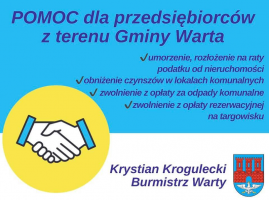 W związku z sytuacją kryzysową w kraju i regionie burmistrz Warty wprowadza ulgi dla przedsiębiorców zarejestrowanych na terenie tejże gminy.