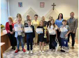 W sali konferencyjnej Urzędu Gminy Wróblew (pow. sieradzki) uroczyście wręczono nagrody laureatom VII MIĘDZYSZKOLNEGO KONKURSU MATEMATYCZNEGO TRZECIOKLASISTÓW O PUCHAR WÓJTA GMINY WRÓBLEW. Konkurs odbył się 21 maja 2025 r. w szkole Podstawowej w Słomkowie Mokrym.