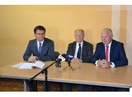 W Urzędzie Gminy w Brąszewicach odbyła się wczoraj konferencja prasowa, w której uczestniczyli wicemarszałek Senatu prof. Michał Seweryński, poseł na Sejm RP Piotr Polak oraz wójt gminy Brąszewice Karol Misiak.