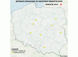 Liczby, tabele, czy porównania nie zawsze przemawiają do wyobraźni kierowców i pieszych. Dlatego też każdego dnia przez cały okres wakacji Policja prezentuje bieżącą liczbę i lokalizację wypadków drogowych ze skutkiem śmiertelnym z ostatniej doby oraz od początku wakacji. Niestety z każdym dniem mapa będzie coraz mniej przejrzysta, ponieważ przybywać będą nowe punkty.