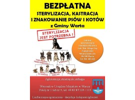 W gminie Warta ruszył program bezpłatnych sterylizacji, kastracji i znakowania psów i kotów. Każdy mieszkaniec może zgłosić do 2 szt. zwierząt.