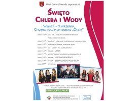 Wójt Gminy Sieradz zaprasza jutro do Chojnego na Święto Chleba i Wody. Uroczystości rozpoczną się o 14:30 w Kościele pw. św. Anny w Chojnem. Część artystyczna rozpocznie się o 16, na placu przy boisku "Orlik". Szczegóły na plakacie.