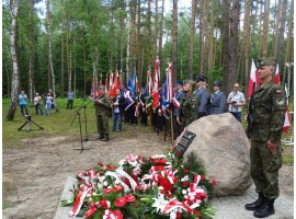 W lesie w Górach Prusinowskich (gm. Szadek) odsłonięto dziś (25.05) pomnik poświęcony polskim lotnikom - podporucznikowi Tadeuszowi Sawickiemu oraz kapralowi Brunonowi Ślebiodzie, którzy zginęli w pierwszych dniach września 1939 roku. W uroczystości wzięli udział m.in. rodzina poległych żołnierzy, służby mundurowe, władze samorządowe i państwowe, a także okoliczni mieszkańcy.
