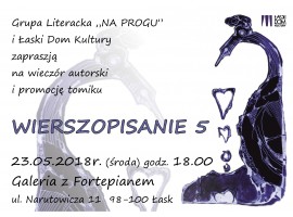 Łaski Dom Kultury zaprasza na wieczór autorski i promocję tomiku "Wierszopisanie 5". To kolejny tomik wierszy i prozy członków Grupy Literackiej "Na progu".