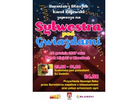 Urząd Miejski w Błaszkach nie rezygnuje z miejskiego sylwestra i zaprasza do wspólnej zabawy pod gwiazdami. W programie zabawa z DJ-em, życzenia i pokaz sztucznych ogni.
