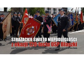 Zarząd Ochotniczej Straży Pożarnej w Błaszkach wraz z druhami i druhnami serdecznie zaprasza na uroczyste obchody Strażackiego Święta Niepodległości z okazji 120-lecia OSP Błaszki pod Patronatem Honorowym Prezydenta Rzeczypospolitej Polskiej Andrzeja Dudy. Obchody jubileuszu celowo zostały zaplanowane na 11 listopada, by podkreślić jak "rycerze" św. Floriana walczyli nie tylko z żywiołami, ale również z wrogiem o niepodległość Ojczyzny.