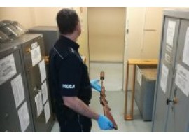 Sieradzcy policjanci zatrzymali 32-latka, który we własnym domu ukrył przedmioty pochodzące z przestępstwa oraz nielegalną broń. Mężczyzna nie przypuszczał, że policjanci znajdą ukryty na poddaszu KBKS.