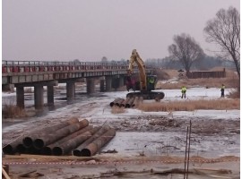 Trwają roboty w ramach inwestycji przy budowie nowego mostu na rzece Warcie w ciągu drogi wojewódzkiej nr 710. Obok starego obiektu powstaje przeprawa tymczasowa.