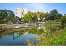 W Sieradzu rozpoczęło się oczyszczanie stawu przy ul. Ogrodowej oraz naprawa stopni kamiennych w skarpie, w tym: odpompowanie wody.