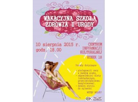 W Centrum Informacji Kulturalnej w Sieradzu w najbliższy poniedziałek odbędą się bezpłatne warsztaty pn. "Wakacyjna Szkoła Zdrowia i Urody". Organizatorzy zapewniają, że będzie można dowiedzieć się wielu ciekawych rzeczy.