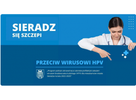Prezydent Miasta Sieradza zaprasza na BEZPŁATNE szczepienia ochronne przeciwko wirusowi HPV. Szczepienia realizowane w 2024 roku są częścią "Programu polityki zdrowotnej w zakresie profilaktyki zakażeń wirusem brodawczaka ludzkiego (HPV12)" dla mieszkańców miasta Sieradza na lata 2022 - 2025".