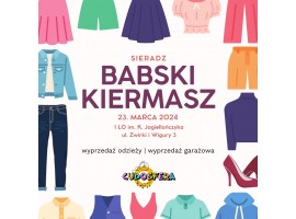 W sobotę 23 marca w I LO im. Kazimierza Jagiellończyka w Sieradzu odbędzie się Babski Kiermasz. Jeśli macie coś, czego już nie nosicie, nie lubicie, jest za małe lub za duże- można te rzeczy wymienić lub sprzedać. Idealna okazja będzie własnie na Babskim Kiermaszu.
