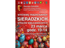 Wystawa Sieradzkich Stołów Wielkanocnych to impreza cykliczna organizowana dla mieszkańców Powiatu Sieradzkiego. Tegoroczna jej edycja odbędzie się w sobotę 23.03. br. w sali konferencyjnej C Starostwa Powiatowego w Sieradzu. Wstęp będzie wolny.