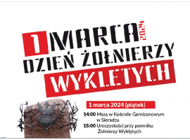 1 marca obchodzony jest Narodowy Dzień Żołnierzy Wyklętych. W Sieradzu uroczystości rozpoczną się od podsumowania wojewódzkiego etapu konkursu "Żołnierze Wyklęci - niezłomni obrońcy Rzeczypospolitej" organizowanego przez Centrum Rozwoju Edukacji Województwa Łódzkiego w Sieradzu, które będzie się w Teatrze Miejskim.