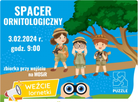 Zima wbrew pozorom to doskonały czas na obserwowanie ptaków. W parkach można spotkać gatunki, których nie zobaczy się wiosną lub latem. Dlatego zapraszamy mieszkańców Sieradza, zwłaszcza dzieci z opiekunami, na "Spacer Ornitologiczny" w parku Mickiewicza. Spacer odbędzie się 03 lutego o godzinie 09:00.