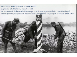 29 sierpnia o godzinie 16.30 w ramach "Muzealnych wakacyjnych spotkań z historią 2023", Muzeum Okręgowe w Sieradzu, zaprasza do obejrzenia filmu dokumentalnego z 1967r., zrealizowanego w całości z archiwalnych kronik filmowych polskich operatorów i fotografów wojennych w latach 1939-1945. Zbliżająca się 84. Rocznica Wybuchu II Wojny Światowej, otwiera możliwość zapoznania się z przygotowanym przez sieradzkie muzeum interesującym dokumentem oddającym hołd pamięci Polaków walczących na wszystkich frontach drugiej wojny światowej oraz na froncie podziemnym.