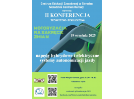Centrum Edukacji Zawodowej w Sieradzu i Sieradzkie Centrum Kultury zapraszają na II Konferencję "Motoryzacja na zakręcie zmian". To nieodpłatne spotkanie, jak podkreślają organizatorzy, może zdefiniować przyszłość transportu.