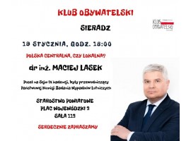 W Sieradzu będzie jutro spotkanie w ramach Klubu Obywatelskiego z dr inż. Maciejem Laskiem. Organizatorzy zapraszają do sali 113 starostwa o godzinie 18.