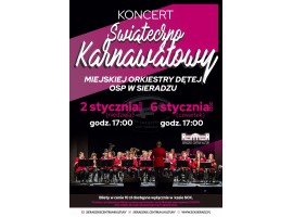 Na te koncerty zaprasza Miejska Orkiestra Dęta OSP w Sieradzu, zaplanowano je na 2 i 6 stycznia w Teatrze Miejskim w Sieradzu. Rozpoczną się o godz. 17:00. Będą podzielone na dwie części. Pierwsza będzie nawiązaniem do świąt Bożego Narodzenia, druga do karnawału.