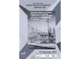 Grupa „Detektywi Pól Bitewnych Sieradz 1939” oraz Urząd Miasta w Sieradzu i Oddział PTTK w Sieradzu zapraszają na spotkanie dotyczące podsumowania projektu pod nazwą "Upamiętnienie pierwszej potyczki żołnierzy 31 Pułku Strzelców Kaniowskich z Sieradza z Niemcami w dniu 4 IX 1939 roku na ówczesnych przedmieściach Sieradza".