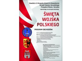 Dowódca 15 Brygady Wsparcia Dowodzenia, Zarząd Powiatu Sieradzkiego i Prezydent Miasta Sieradza zapraszają na uroczyste obchody Święta Wojska Polskiego. 15 sierpnia, początek godz. 11.00. Po uroczystościach chętni będą mogli wziąć udział w Dniu Otwartych Koszar.