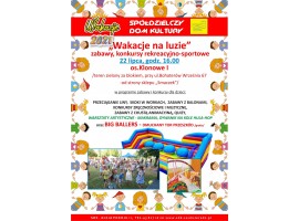 Spółdzielczy Dom Kultury w Sieradzu zaprasza 22 lipca na "Wakacje na luzie". W programie zabawy i konkursy rekreacyjno- sportowe, warsztaty artystyczne oraz dmuchany tor przeszkód. Początek imprezy o 16.