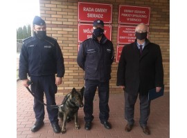 Dzięki wsparciu finansowemu samorządu gminy Sieradz, służbę w sieradzkiej komendzie rozpoczął owczarek niemiecki – Lupo, wyspecjalizowany do wyszukiwania narkotyków. Komendant Powiatowy Policji w Sieradzu insp. Cezary Adamczyk podziękował wójtowi oraz Radzie Gminy Sieradz za przekazanie funduszy na zakup policyjnego psa.