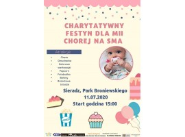 11 lipca w Parku Broniewskiego w Sieradzu, odbędzie się charytatywny festyn dla Mii chorej na rdzeniowy zanik mięśni - czyli Sma. Do zamknięcia zbiórki zostały tylko 3 tygodnie i ponad 3 miliony do zebrania.