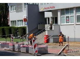Prace drogowe, które widać na chodniku przy Poczcie Polskiej przy ul. Żwirki i Wigury w Sieradzu, to wymiana starych płyt chodnikowych na kostkę. Ładniej ma być też przed sieradzkim Pałacem Ślubów.