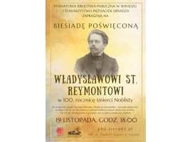 Powiatowa Biblioteka Publiczna w Sieradzu oraz Towarzystwo Przyjaciół Sieradza serdecznie zapraszają dziś na spotkanie poświęcone 100. rocznicy śmierci laureata Nagrody Nobla - Władysława Stanisława Reymonta.