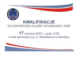 Zachęcamy do udziału w kwalifikacjach organizowanych w 15 Sieradzkiej Brygadzie Wsparcia Dowodzenia do zawodowej służby wojskowej i Narodowych Sił Rezerwowych. Odbędą się one 17 czerwca br. (godz. 8:00 w hali sportowej przy ul. Mickiewicza 15 w Sieradzu).