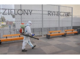 W czwartkowe popołudnie Przedsiębiorstwo Komunalne w Sieradzu, na zlecenie miejscowego Urzędu Miasta przeprowadziło dezynfekcję "Zielonego Ryneczku".