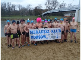 Ponad dwudziestka miłośników zimnych kąpieli witała nowy rok w nurcie rzeki Warty w Sieradzu. Na plaży nie zabrakło też symbolicznej lampki szampana.