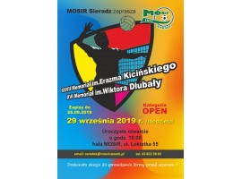 Miejski Ośrodek Sportu i Rekreacji w Sieradzu zaprasza na XXVII Memoriał im. Erazma Kicińskiego i XVI Memoriał im. Wiktora Dłubały w Piłce Siatkowej. Zawody odbędą się w niedzielę, 29 września. Trwają zapisy.