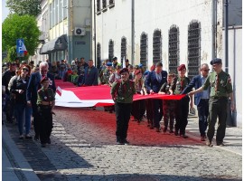 Już po raz kolejny sieradzcy harcerze wspólnie z mieszkańcami miasta zaakcentowali Święto Flagi. Barwny korowód przeszedł z Rynku na most wantowy nad rzeką Wartą, gdzie obchodzono uroczyście 40-lecie budowli.