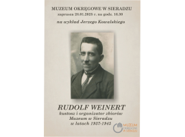 Muzeum Okręgowe w Sieradzu zaprasza we wtorek (28.01.2025 r.) o godz. 16.30 na wykład Jerzego Kowalskiego zatytułowany "Rudolf Weinert. Kustosz i organizator zbiorów Muzeum w Sieradzu w latach 1937-1945".