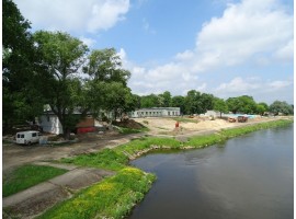 Nad sieradzką rzeką Wartą trwają prace przy ukształtowaniu terenu i instalacyjne w trzech budynkach - niecki basenowe są już prawie gotowe.