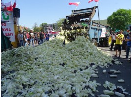 W środę na drogi powiatu sieradzkiego w związku z protestem rolników z Unii Warzywno Ziemniaczanej wyjechało ponad 200 traktorów. Rolnicy przekazali staroście sieradzkiemu petycję do Premiera RP i w geście protestu na placu Wojewódzkim wysypali kapustę pekińską, której nie mogli sprzedać.