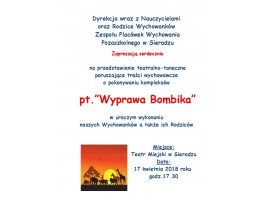 Zespół Placówek Wychowania Pozaszkolnego w Sieradzu, zaprasza jutro na przedstawienie teatralno- taneczne pt: " Wyprawa Bombika".