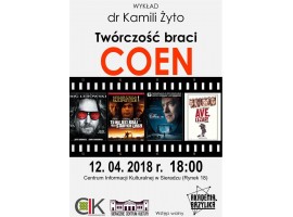 Dziś w Centrum Informacji Kulturalnej w Sieradzu odbędzie się wykład dr Kamili Żyto z Instytutu Kultury Współczesnej Uniwersytetu Łódzkiego. Filmoznawczyni opowiadać będzie o twórczości wielokrotnie nagradzanych braci Coen. Wykład organizowany w ramach projektu Akademia Bazylika. Początek o godzinie 18.