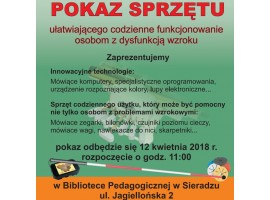Będzie to okazja do zapoznania się ze sprzętem, który ułatwia życie osobom niewidomym i niedowidzącym. Spotkanie w najbliższy czwartek w Bibliotece Pedagogicznej w Sieradzu organizuje sieradzki oddział Polskiego Związku Niewidomych.