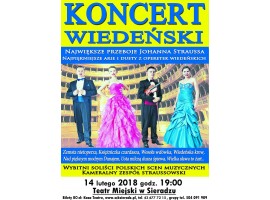 W środę 14 lutego w Teatrze Miejskim w Sieradzu odbędzie się koncert z udziałem solistów polskich i europejskich oper. Koncert programowo nawiązywał będzie do tradycyjnych gali i noworocznych koncertów, odbywających się w Wiedniu.