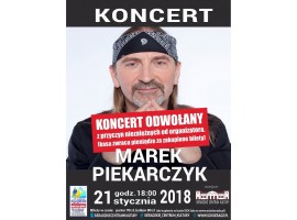Zaplanowany na niedzielę 21 stycznia koncert Marka Piekarczyka został odwołany. Artysta miał wystąpić w Teatrze Miejskim w Sieradzu.