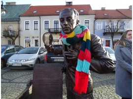 Uczestnicy Warsztatu Terapii Zajęciowej w Sieradzu obdarowali dzisiaj Antoine'a Cierplikowskiego własnoręcznie wykonanym szalikiem.