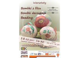 Grupa "Szydełkowe Kwadraty" zaprasza dorosłych wraz z dziećmi na przedświąteczne warsztaty tworzenia bombek choinkowych oraz beadingu.