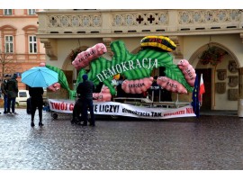 Plac Wojewódzki będzie dziś kolejnym przystankiem happeningu Liść Demokracji - Gąsienice Tour. Gąsienice symbolizujące populistów pożerające liść z napisem „demokracja” to główny element instalacji artystycznej, która dziś od 18 będzie można zobaczyć w Sieradzu.