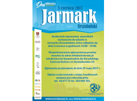 Sieradzkie Centrum Kultury zaprasza wystawców do udziału w Jarmarku Urszulańskim, który odbędzie się dnia 3 czerwca w godzinach 13:00 - 19:00.