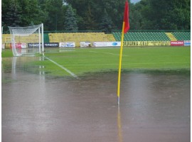 Mecz Warty Sieradz z Bronią Radom w ramach 33. kolejki III ligi został przerwany w 42. minucie z powodu intensywnych opadów deszczu. Po kilkudziesięciu minutach ulewy boisko nie nadawało się do gry. Mecz zostanie dokończony przy stanie 0:1.